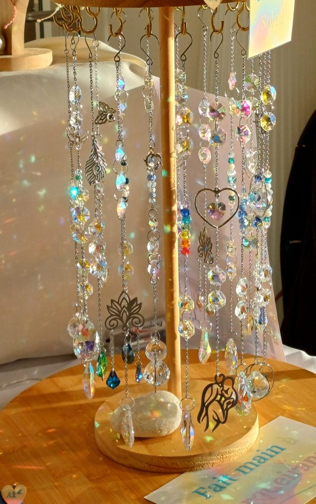 - Attrapes soleil (ma spécialité !). Ils diffusent la lumière en petits arc-en-ciel dans la pièce et sont une vraie présence à la maison.
